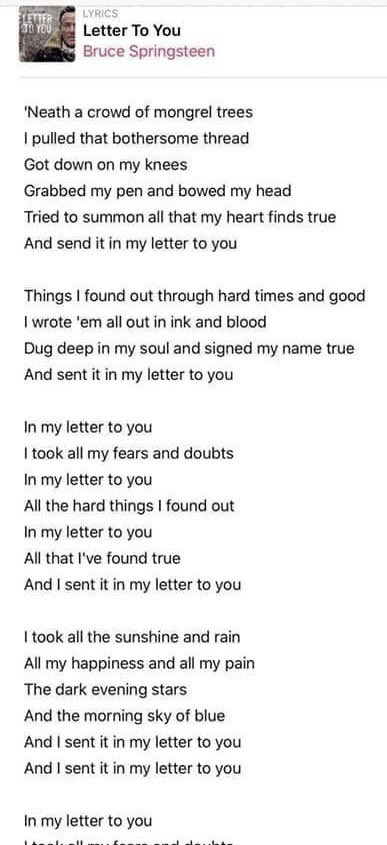 Spring Nuts On Twitter Lyrics To Springsteen Letter To You Springsteen Lettertoyou